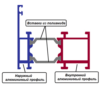 Давайте разберемся что такое теплая алюминиевая система, а что такое холодная алюминиевая система. Алюминиевый профиль теплой алюминиевой системы любого производителя имеет терморазрыв, термомост. Изготовлен термомост из материала, который имеет плохую теплопроводность, то есть не пропускает так быстро через себя ни тепло, ни холод. Внутри профиль той температуры, которая в помещении, а снаружи он той температуры, которая на улице.